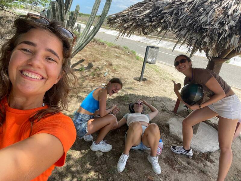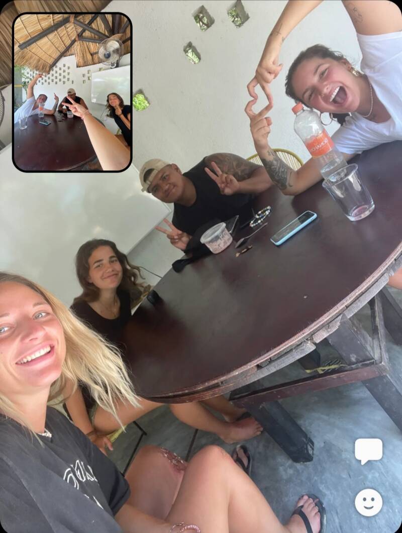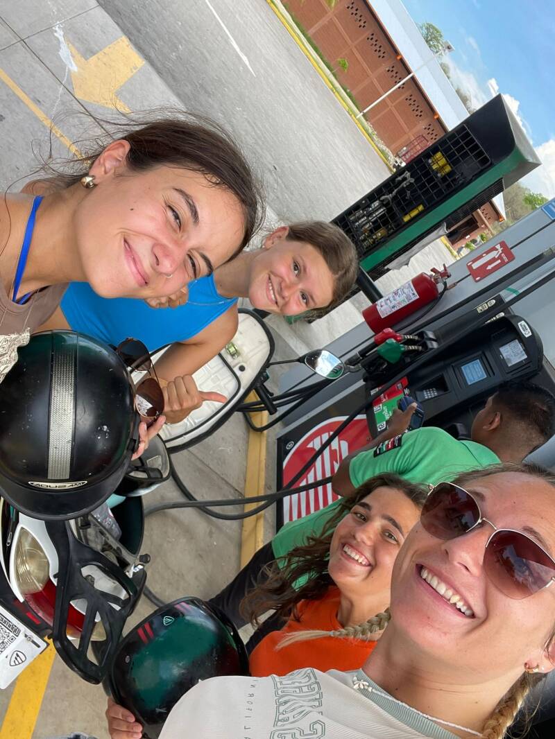 Nun hatten wir drei Probleme: Das erste war, wo Letizia und Milli sind (die Einheimischen wussten es), das zweite war, wie wir mit den beiden Rollern zu den anderen kommen, und das letzte und grösste war, wie wir nach Hause kommen. Ich habe mit Händen und Füssen mit den Einheimischen kommuniziert, und dann konnten wir mit dem Handy von einem Einheimisen Meli anrufen (wir hatten alle kein Guthaben). Meli hat dann mit den Einheimischen auf Spanisch gesprochen, damit sie uns danach zu den anderen bringen. Wir fragten Meli auch, ob es möglich ist, dass uns jemand abholt. Sie meinte dann, ob wir nicht selbst fahren könnten. Ich sagte, ja, im schlimmsten Fall kann ich das schon, weiss aber nicht, wie gut das wäre. Sie meinte, sie gebe uns Bescheid, ob jemand uns abholen kann. So brachten uns nun die Einheimischen zu den anderen.